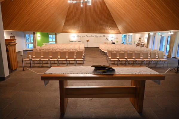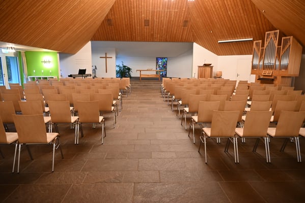 Auch das Kirchgemeindehaus Dürrenäsch eignet sich perfekt für Hochzeiten. Es bietet Platz für 220 Gäste. Ein Mischpult für eine Band, ein Beamer, Mikrophone, eine Küche sowie